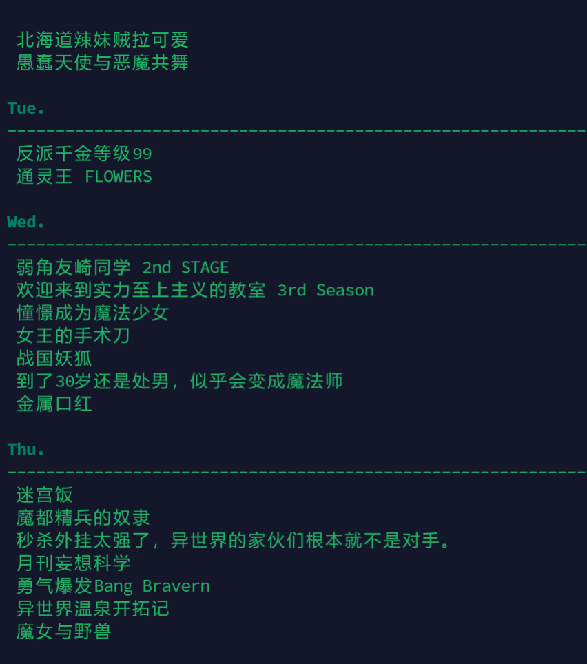 比如夜梦想要查看现在正在更新的番剧,那么就运行: