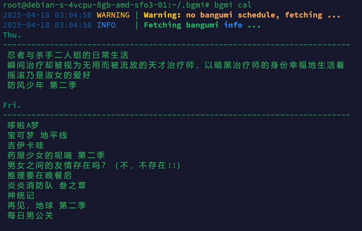 如果一切正常,你就可以看到正在更新的番了(下面这张图是23年的)。番源是bgmi config中的第一行data_source = "bangumi_moe"