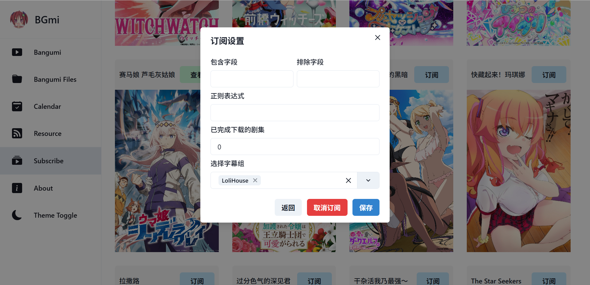 - 下载番剧时的过滤器(支持关键词,字幕组和正则)