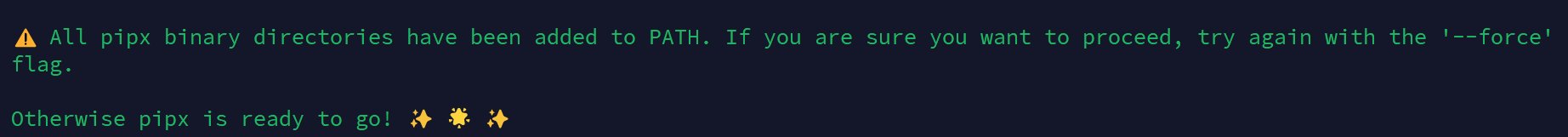 pipx ensurepath # 确保 pipx 在 PATH 里