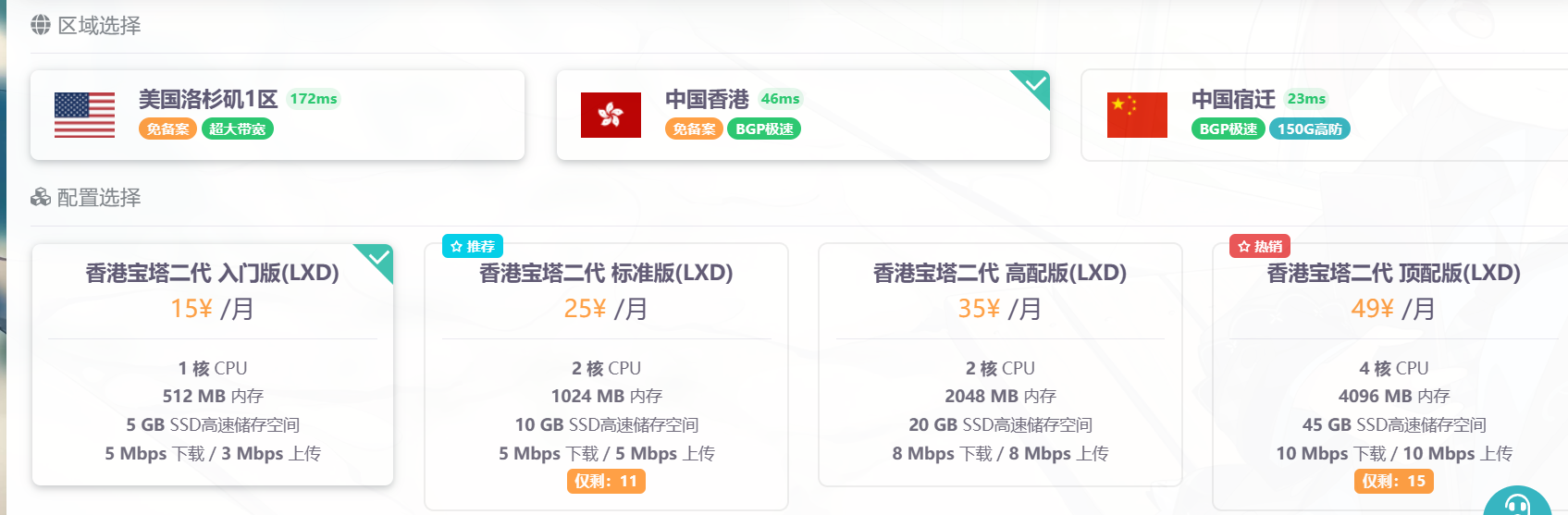 注册后购买最基础的就行,夜梦建议使用宝塔香港,可以省去环境的配置。