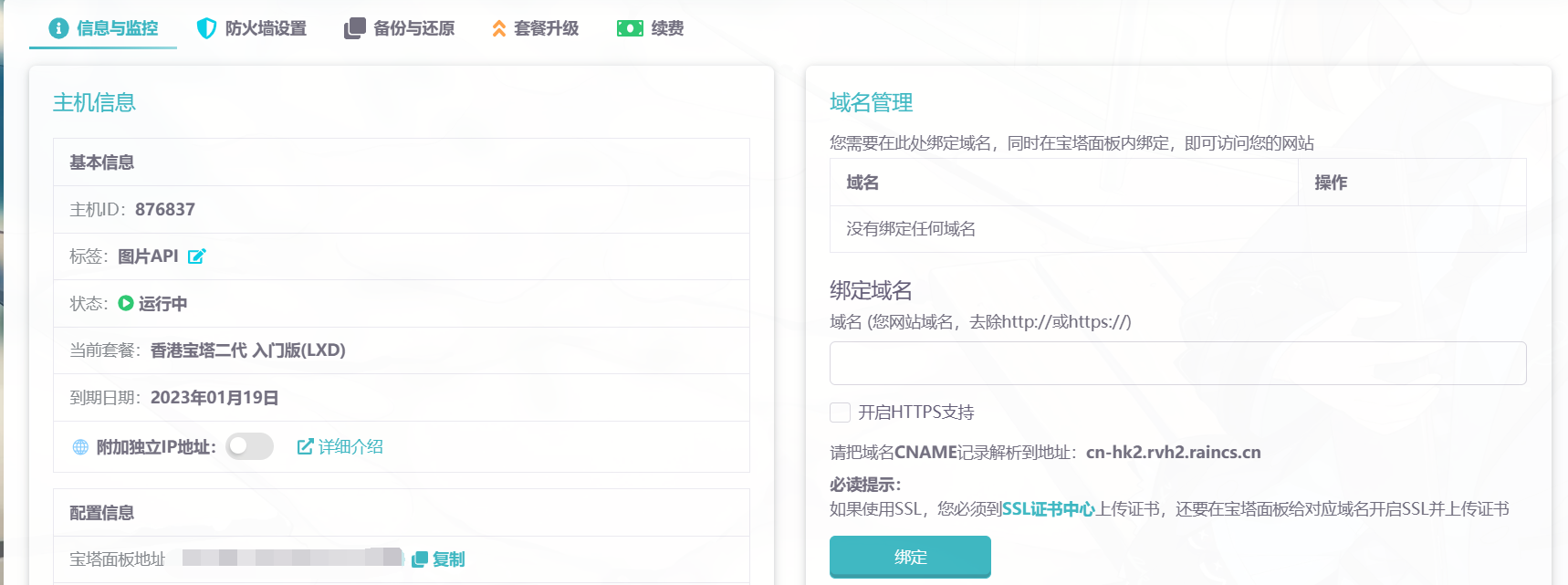 这里夜梦以雨云的宝塔主机(你也可以在上面建立别的站点)为例进行演示: