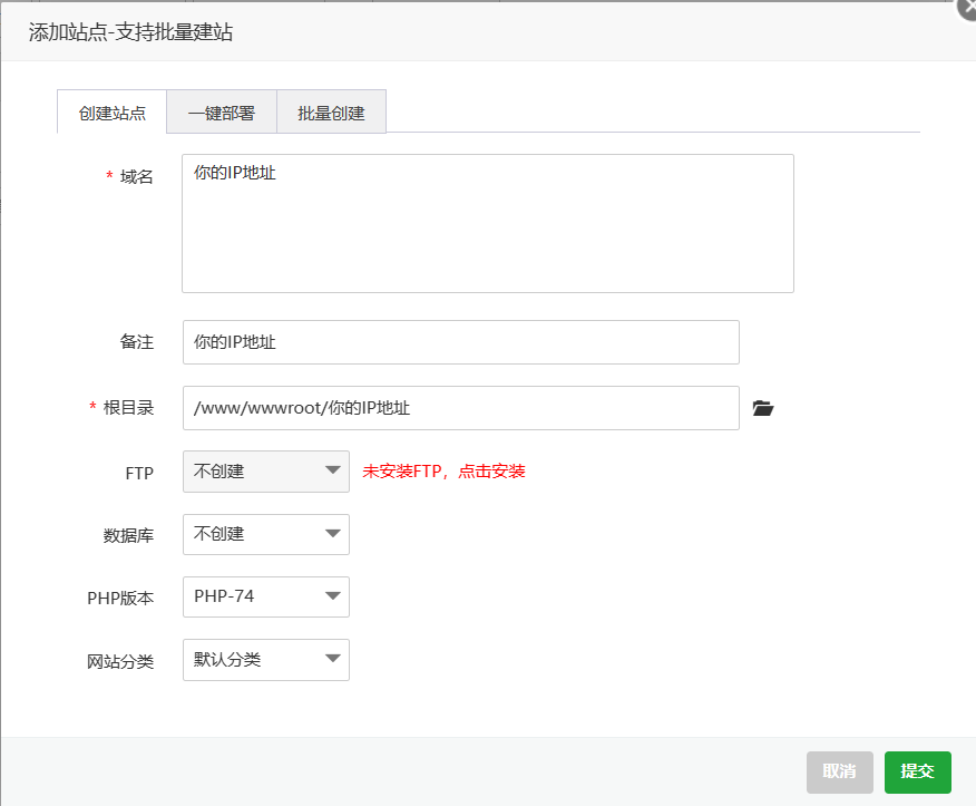 只需要在域名处填写你服务器的IP地址即可!然后点击提交。