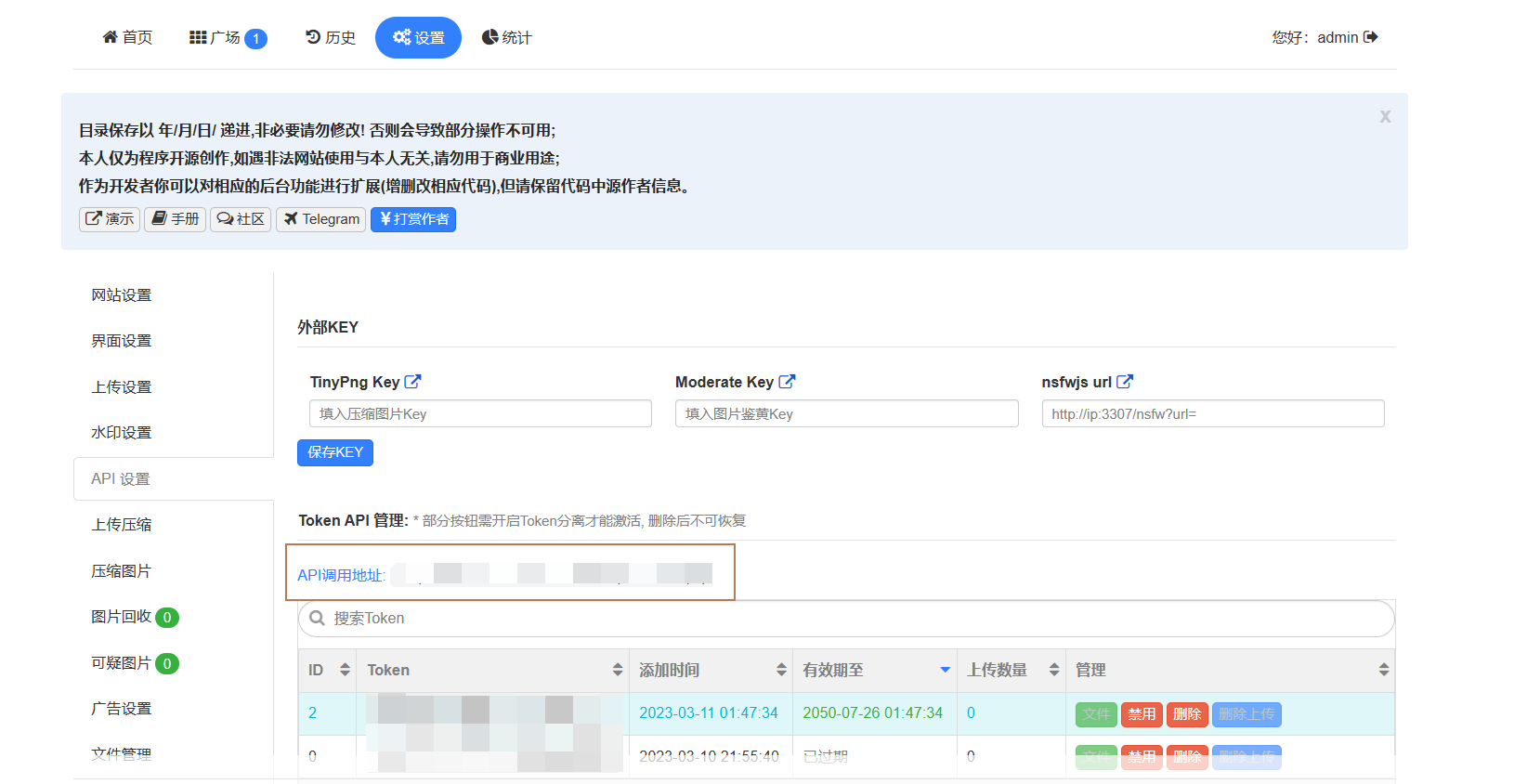 当然了,这时候任何人都可以使用你的图床!如果你只想自己用,或者是给有限的人用,那么推荐你到后台设置开启登录上传功能!