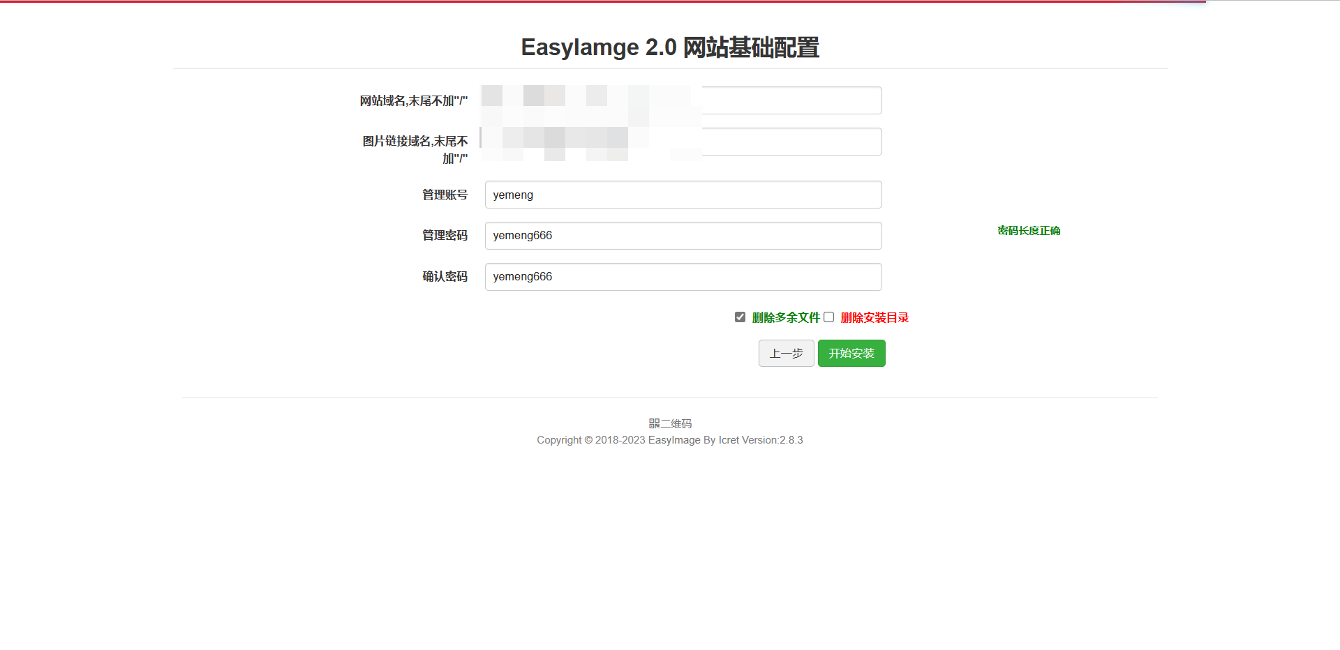 到这里,图床已经准备好了,需要我们访问你的域名(IP地址)进行初始化操作。
