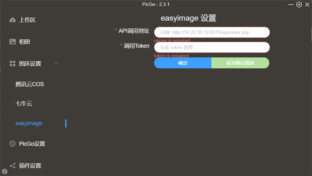 然后我们配置插件,这里需要两个参数,我们到图床设置中获取。