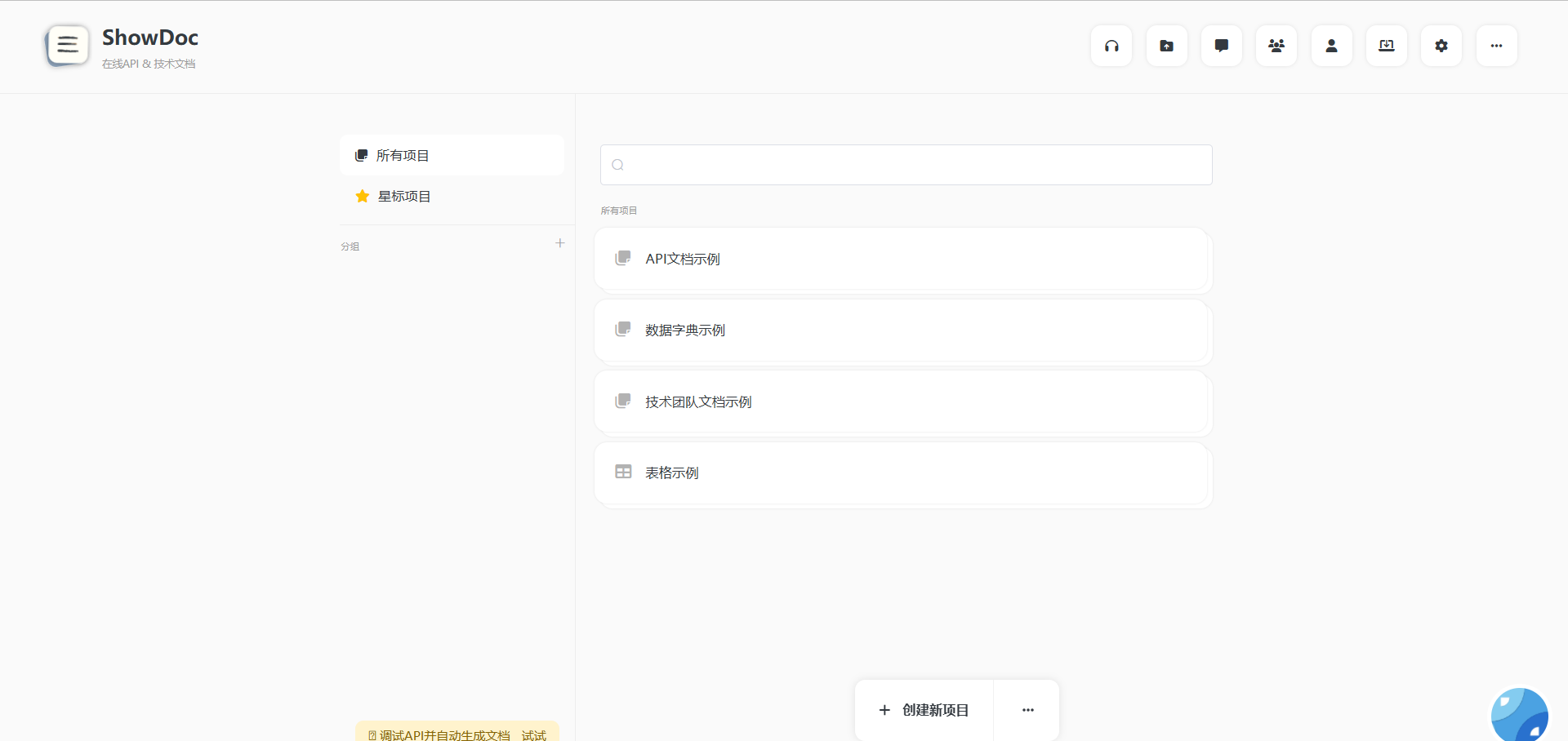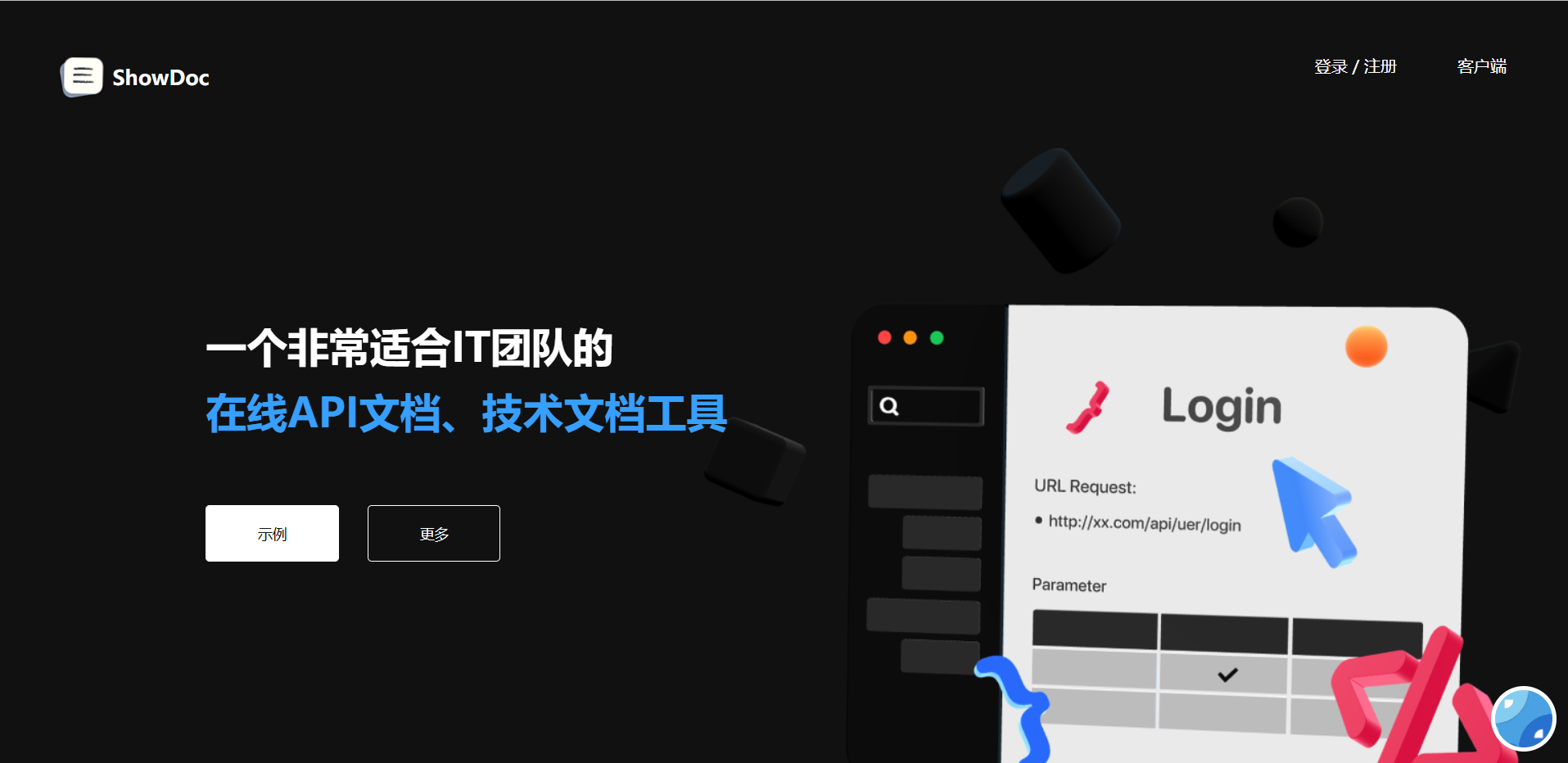 ShowDoc是一款专为IT团队设计的在线API和技术文档工具。你可以使用Markdown语法编写API文档、数据字典、技术文档等。ShowDoc还支持从程序注释自动生成API文档,或通过RunApi客户端边调试接口边生成文档。