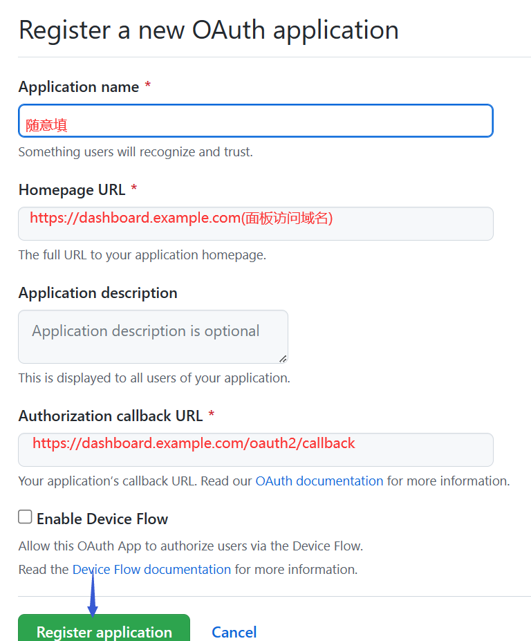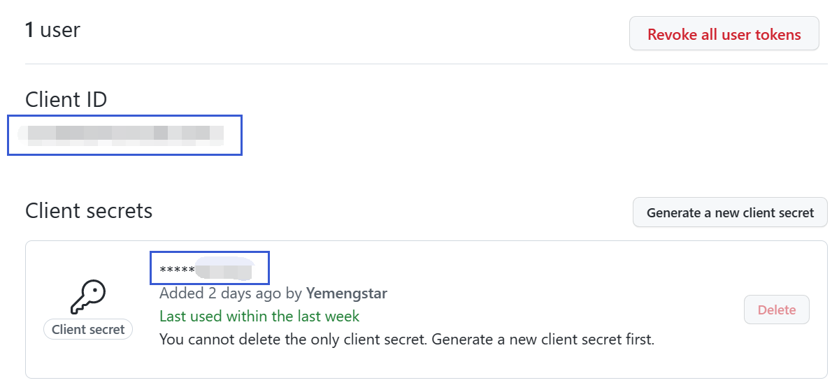 - 输入完成后,能看到OAuth Apps的Client ID和Client secrets两个数值,(其中Client secrets需要自己创建一下,请一定要在第一时间复制并保存,因为这个密钥只出现一次)保存下来。