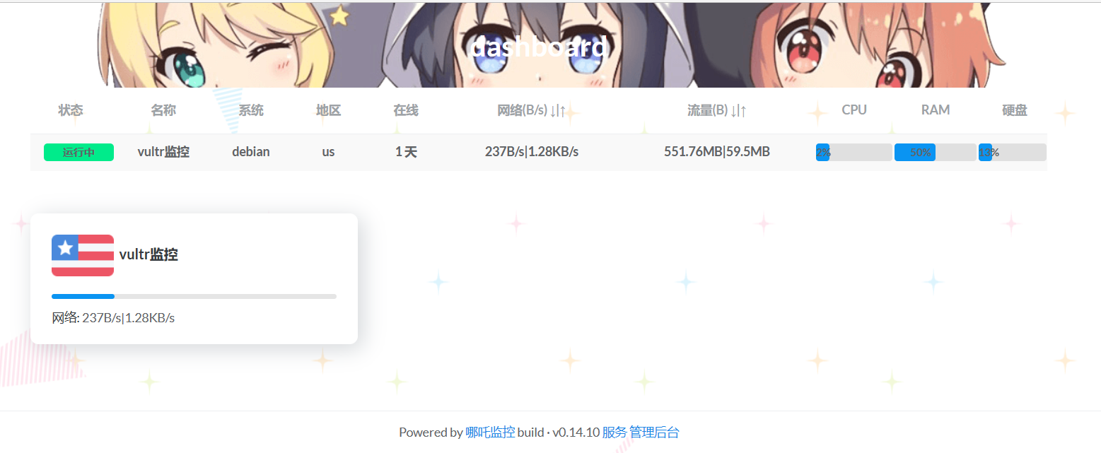 - 解析dashboard.example.com到服务器,作为面板访问域名