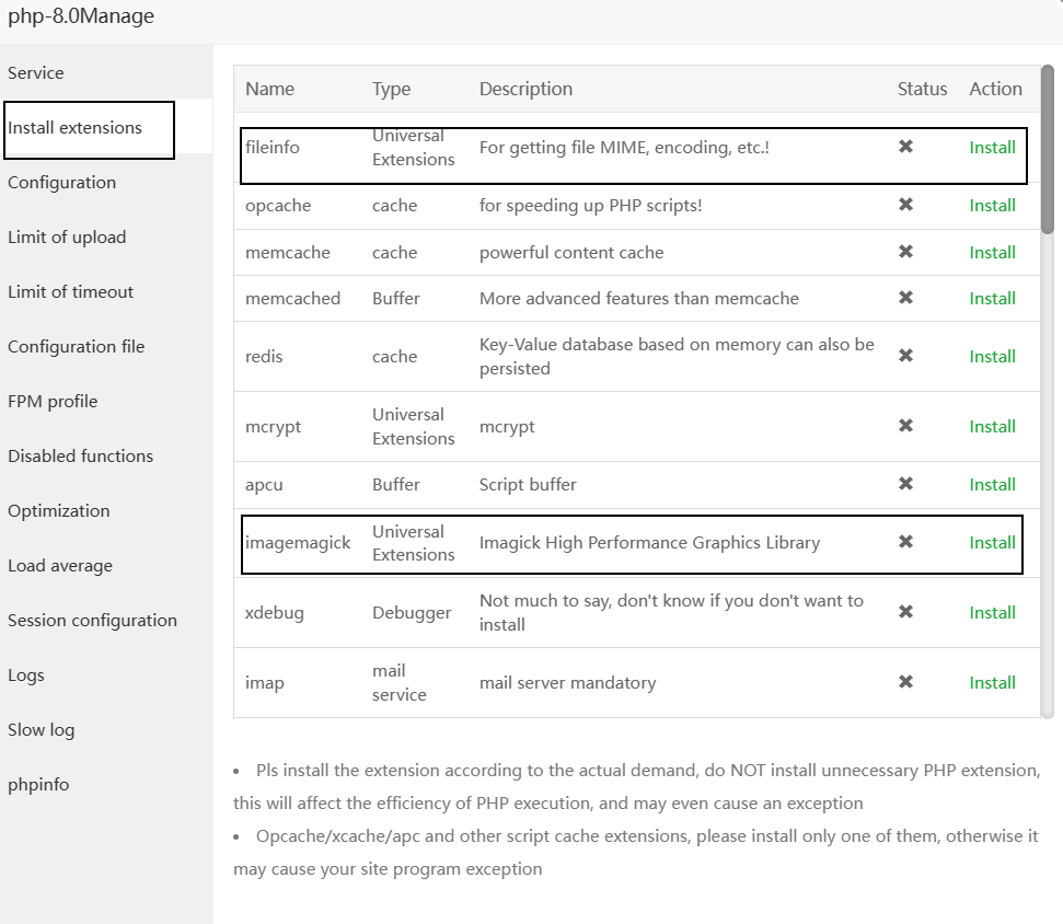 其中Fileinfo扩展需要1G及以上内存,如果内存不够用,可以看夜梦的这篇文章设置1G左右的SWAP。