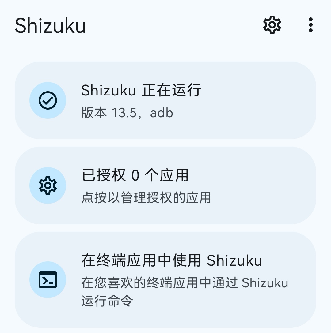 没有问题的话,回到Shizuku软件中,就可以看到“正在运行”了: