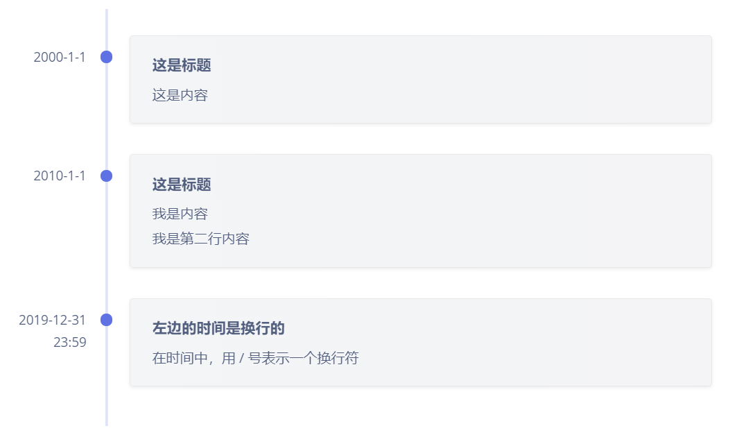[/timeline]每行中用竖线分隔。