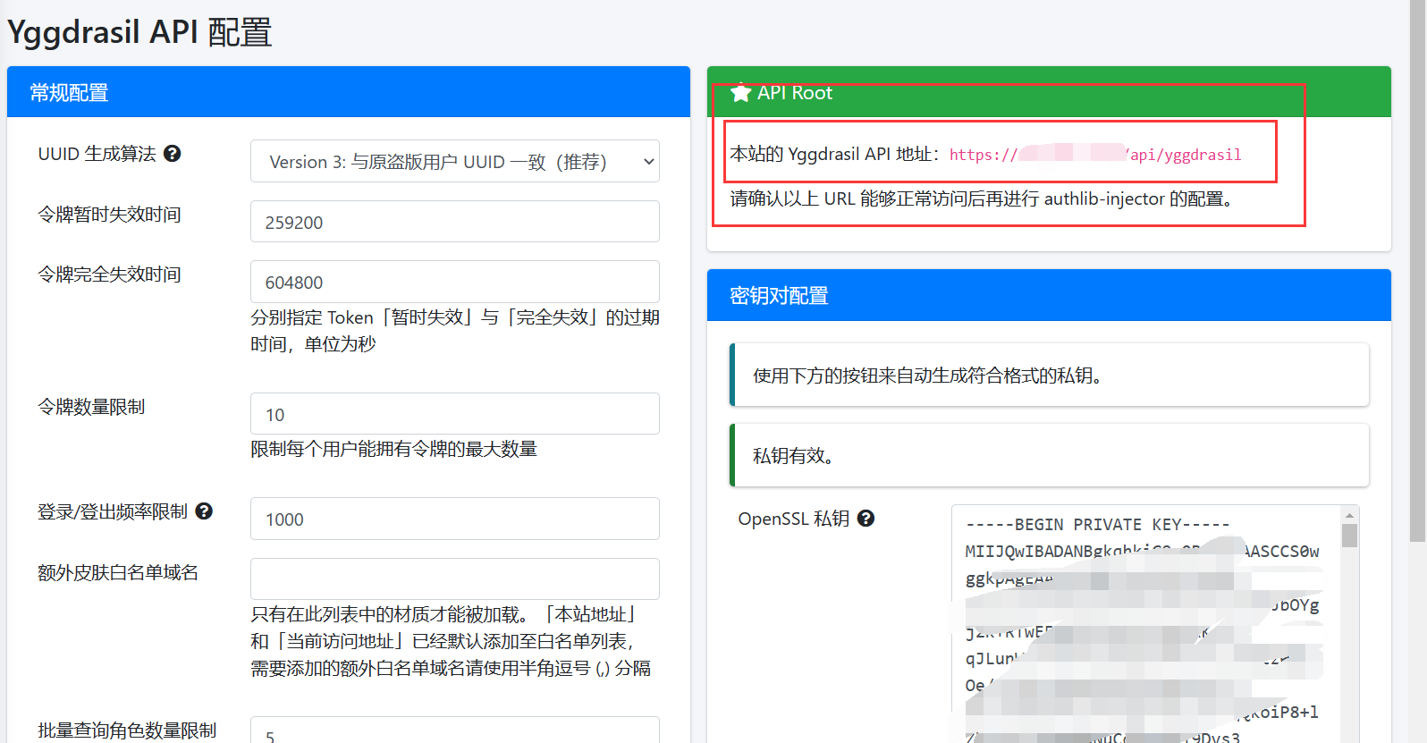 记住API Root中的Yggdrasil API地址,这个就是我们外置登录的验证地址: