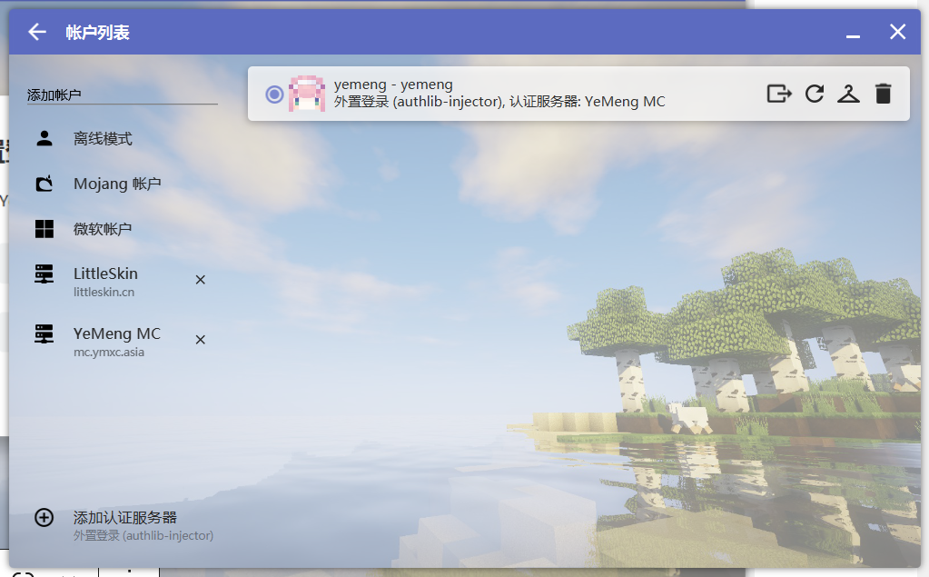 最后,我们到客户端上设置,以HCML为例,我们打开HMCL后,选择左下方的添加认证服务器:
