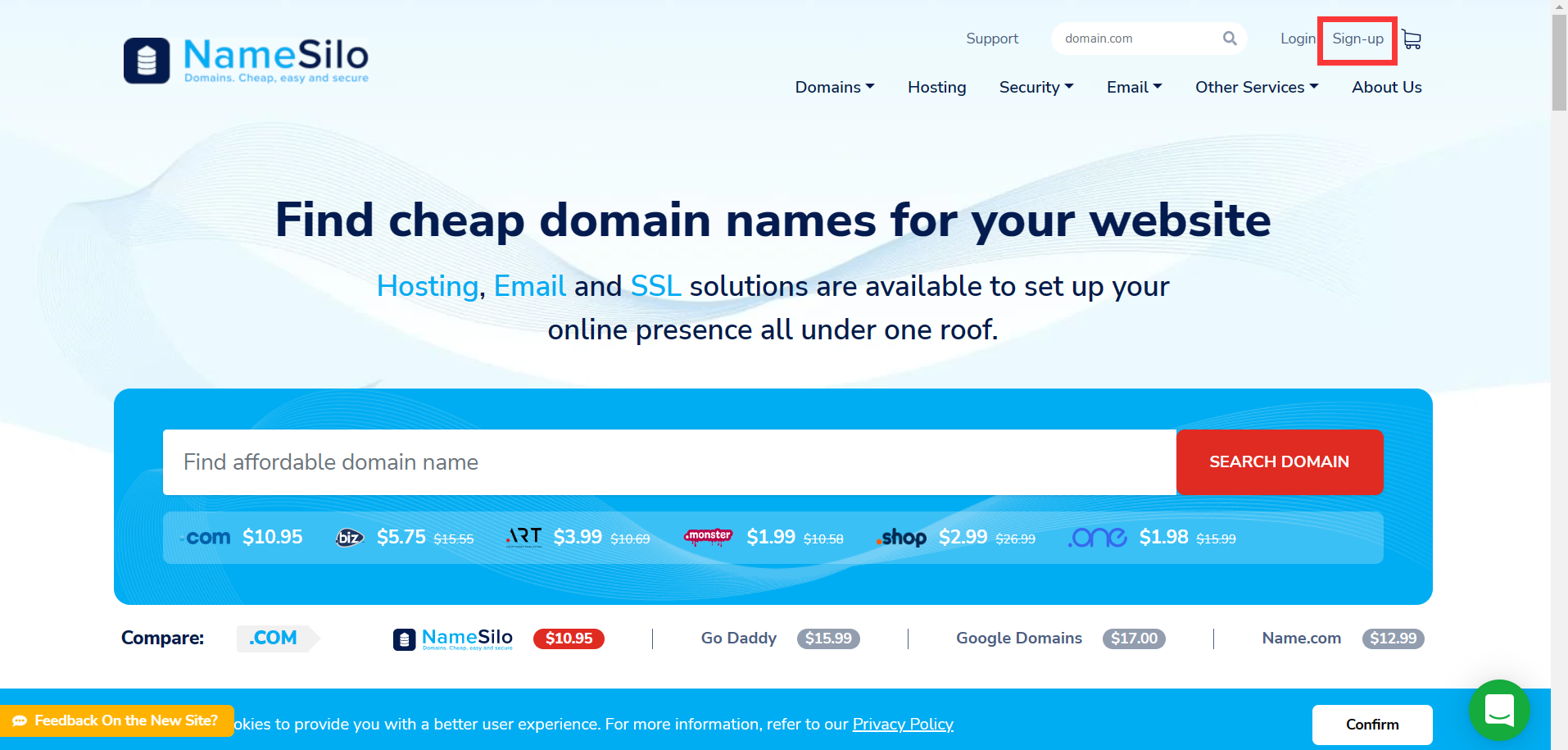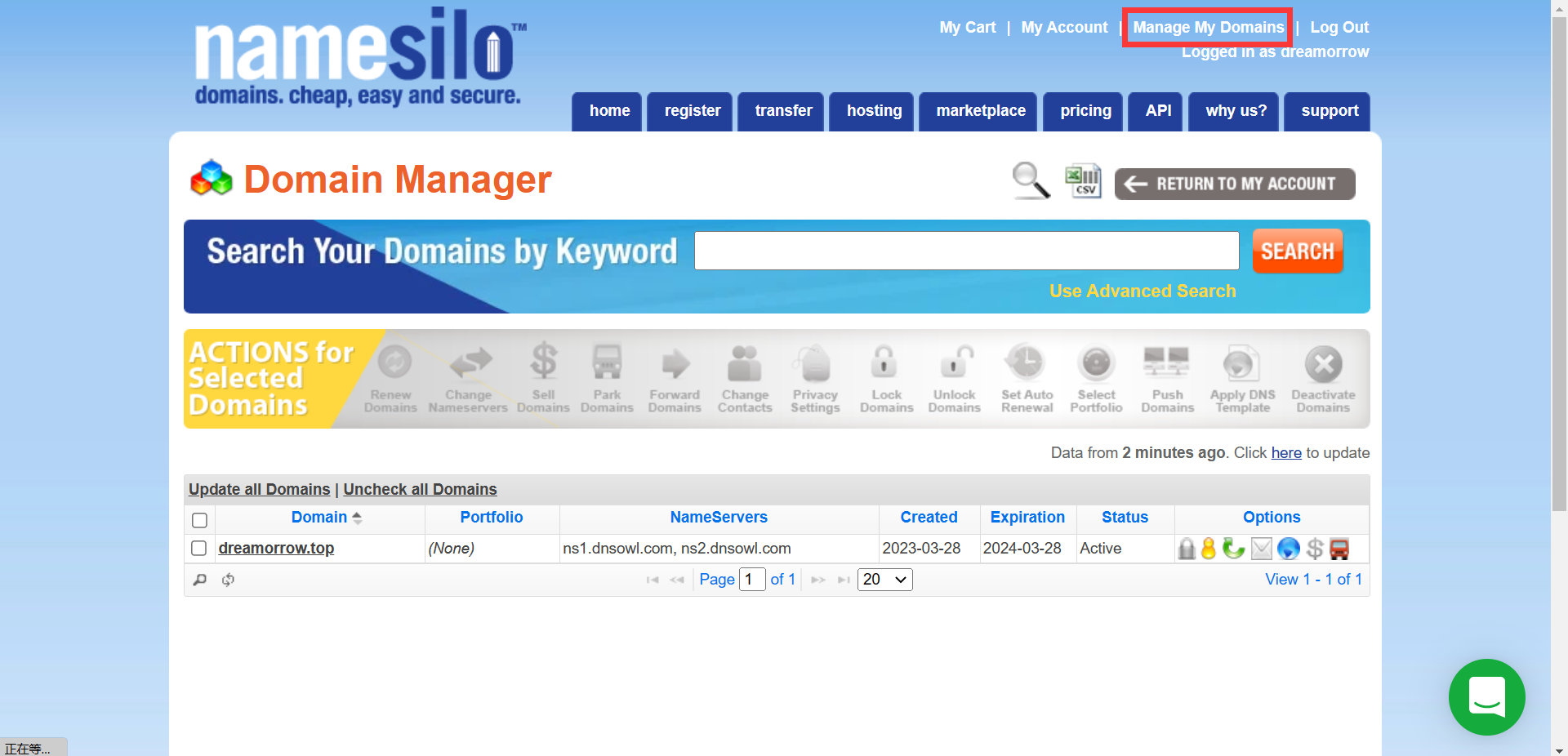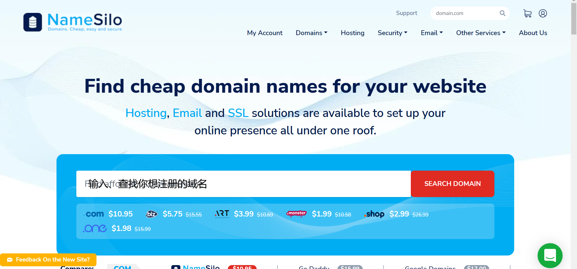 点击后面的链接即可跳转到namesilo:https://www.namesilo.com