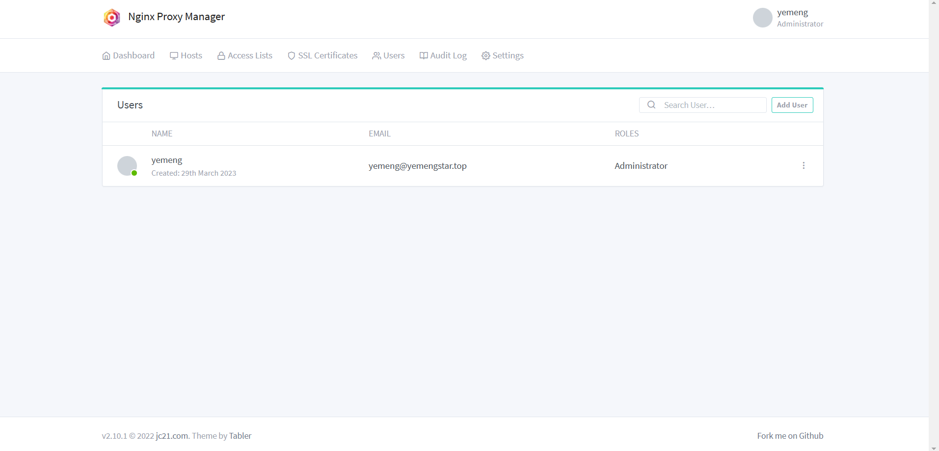 登录进入Nginx Proxy Manager之后,会要求修改用户名、邮箱和密码。