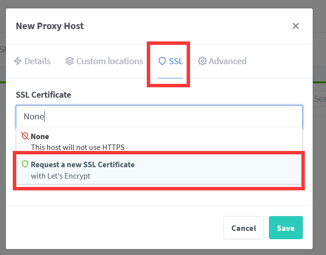 Add Proxy Host: