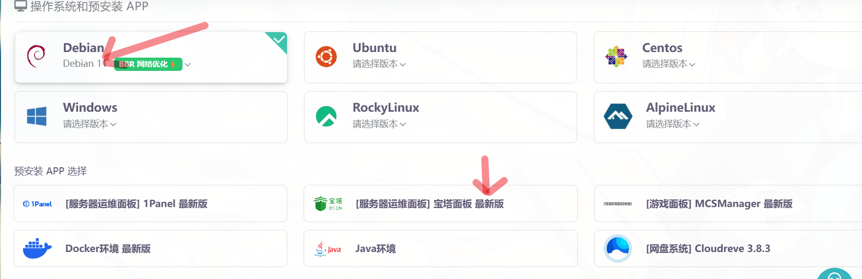 本次演示博客搭建于雨云的美国洛杉矶2区(移动CMI+联通9929优质线路),雨云服务器直接提供了带有宝塔的Debian11系统,可以免去安装宝塔这一步。