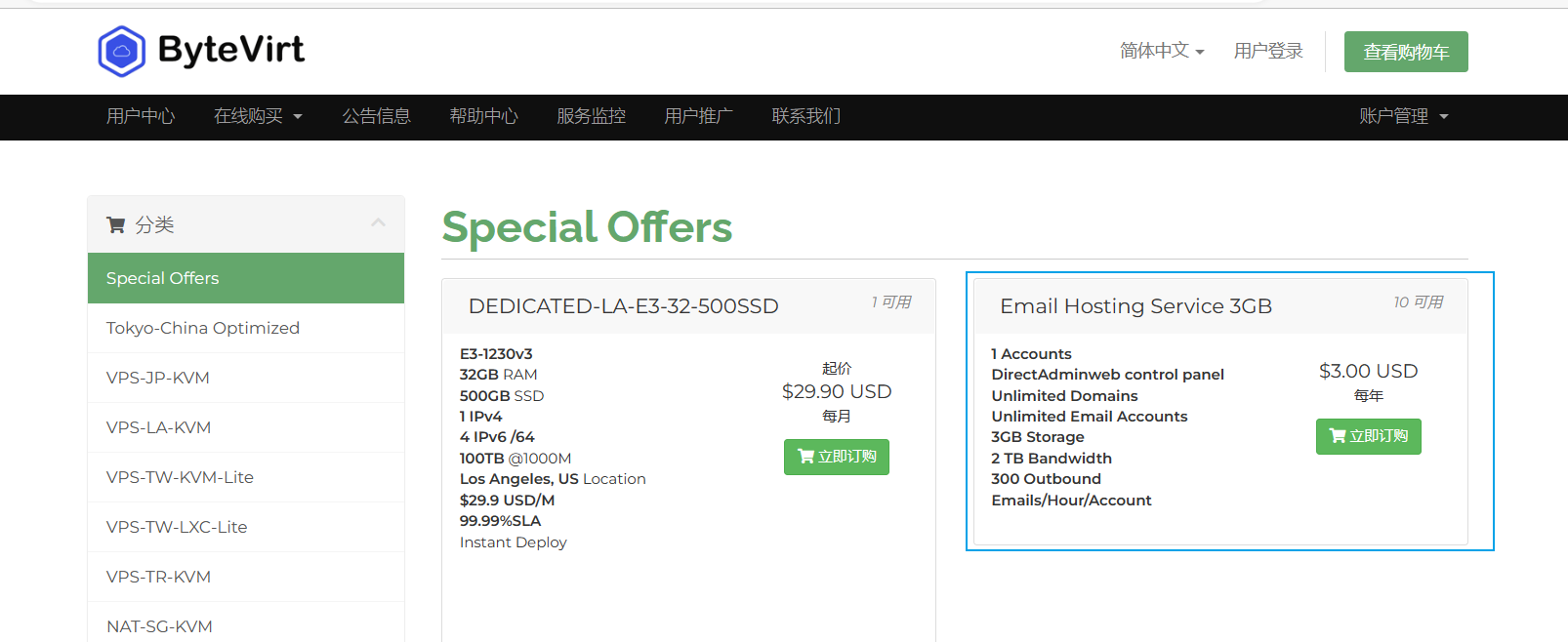 由于夜梦的几台服务器都不被允许开通25端口,但是夜梦又想要使用域名邮箱,于是乎夜梦找到了bytevirt的Email Hosting Service邮局服务,年付3$,尚可接受。