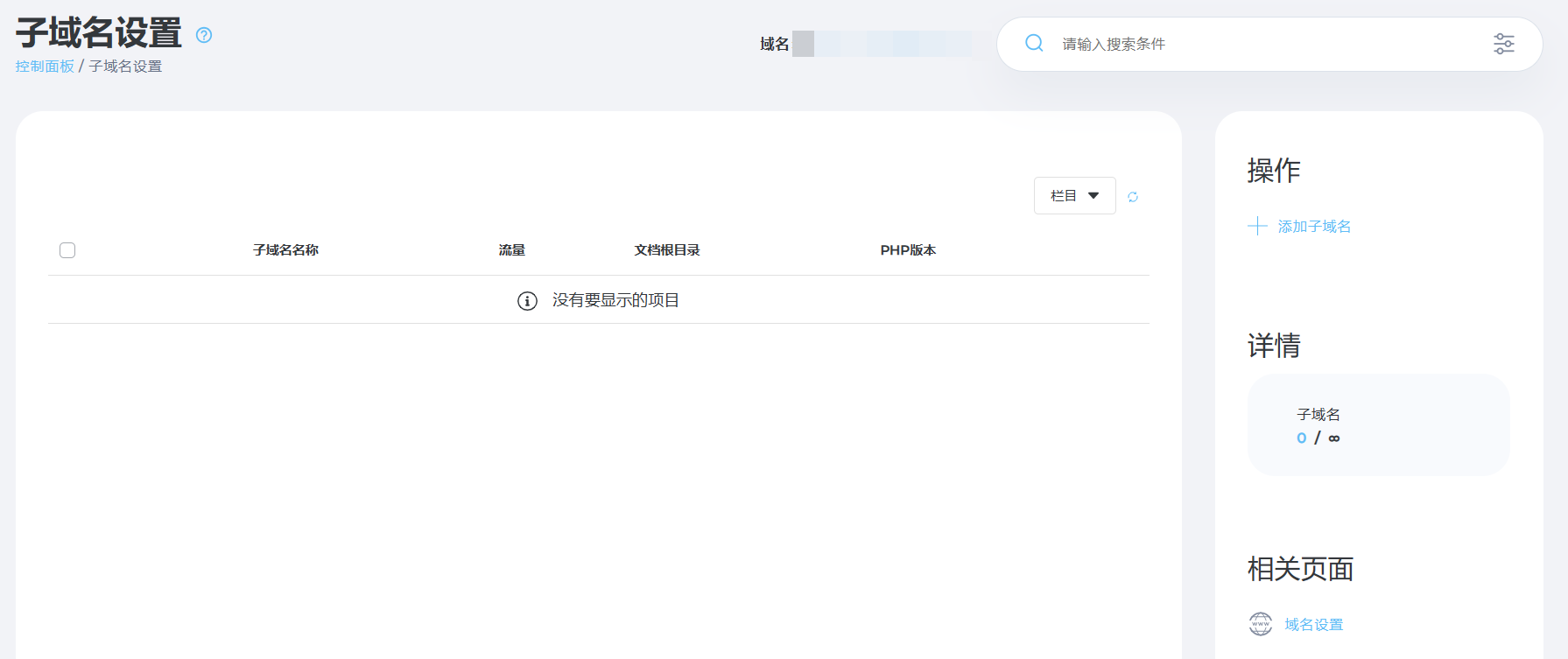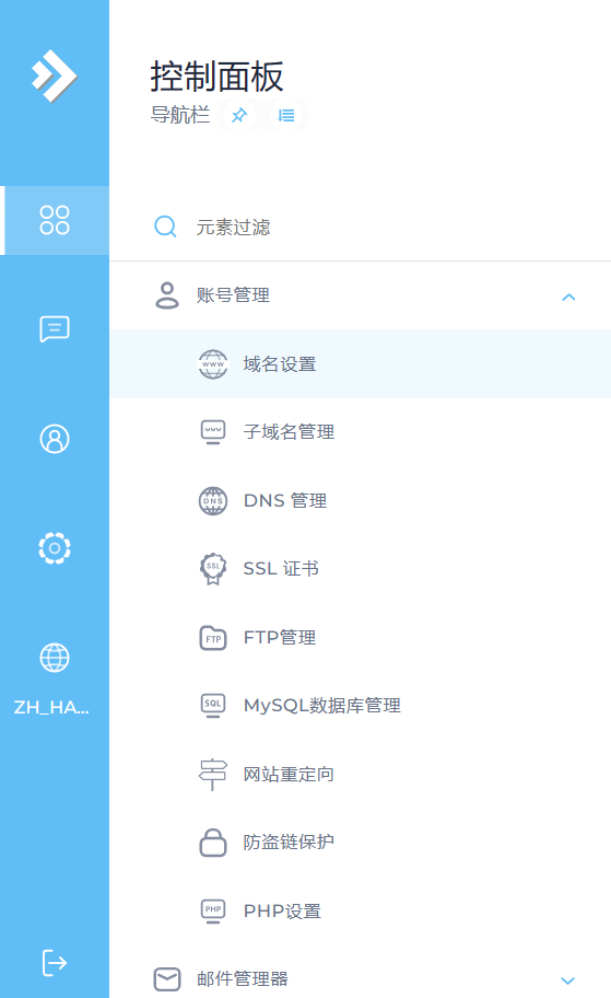 可以在左侧-账号管理中,进行域名、子域名的设置。