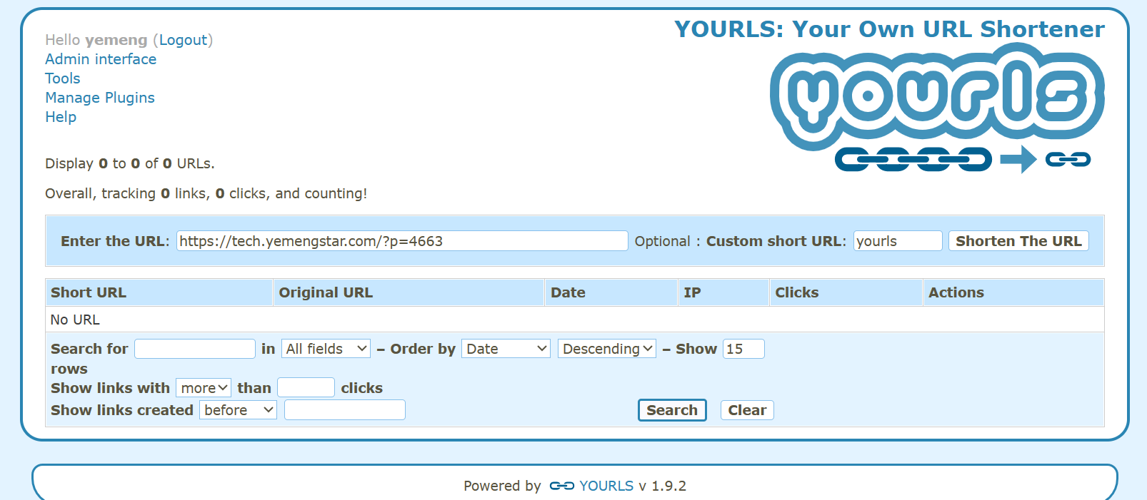 那么访问https://www.o09uh87.top/yourls即可跳转到https://tech.yemengstar.com/?p=4663