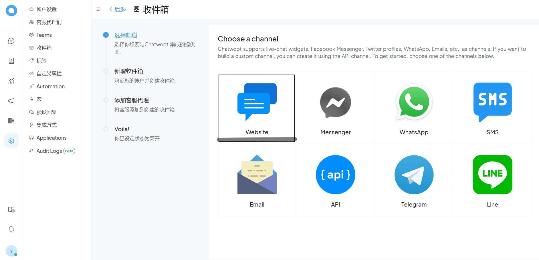 Chatwoot原生支持不同的部署选项,AWS、AZURE、GCP还有DigitalOcean都提供了便捷部署的方式。免费版本使用限制较多,只提供了网页交流方式。不过一般来说已经足够了。