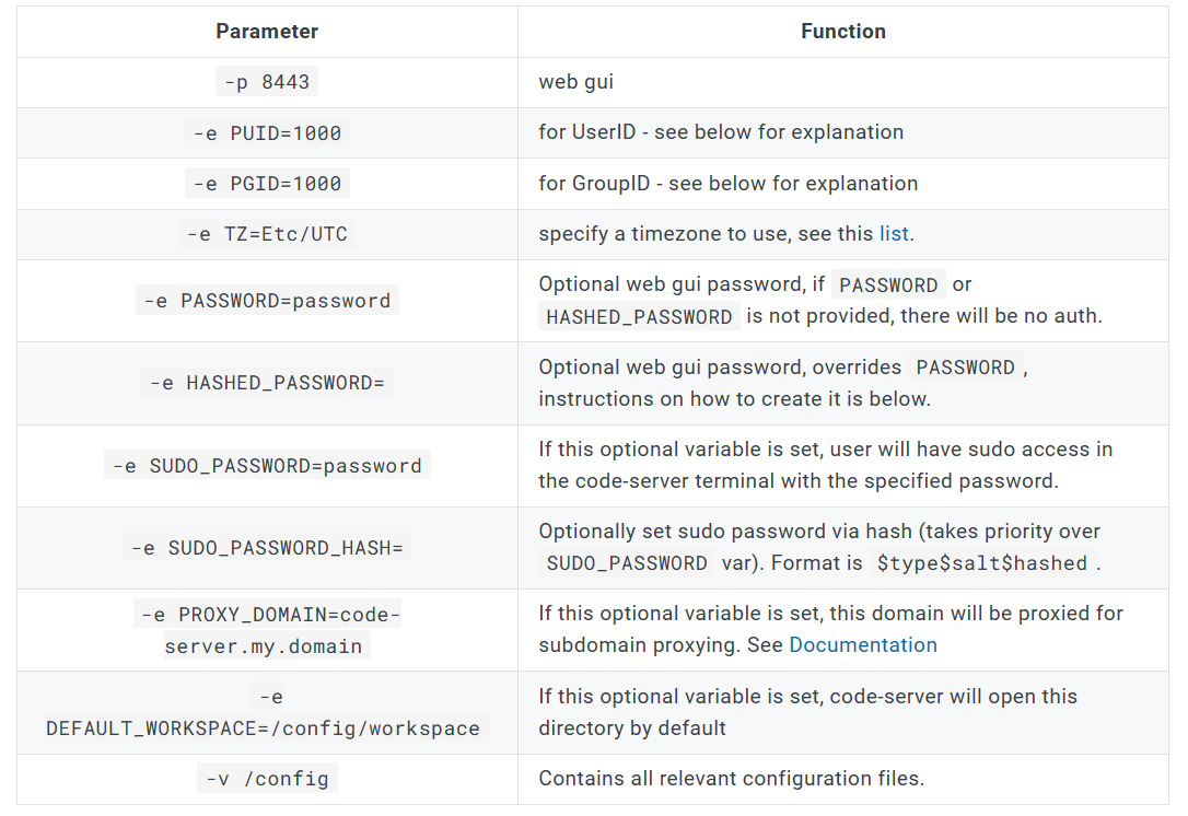 - DEFAULT_WORKSPACE=/config/workspace #optional