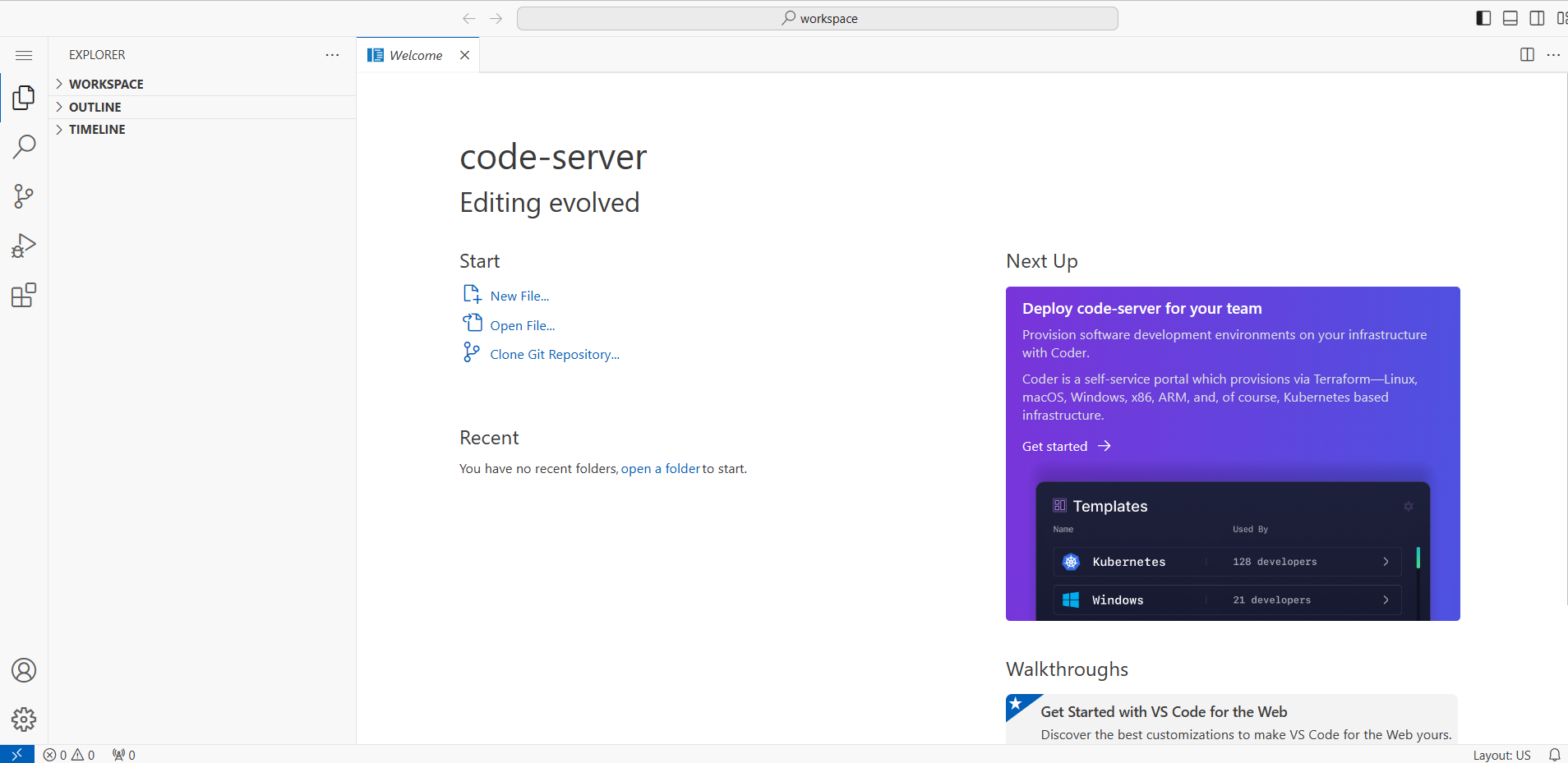 安装完成以后,我们访问ip:8443/code-server.my.domain进入页面: