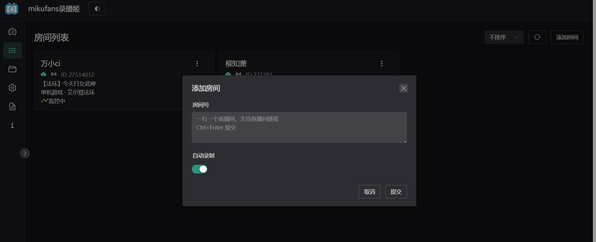 ip:2356/ui/recorder/local/rooms可以添加录制的房间。