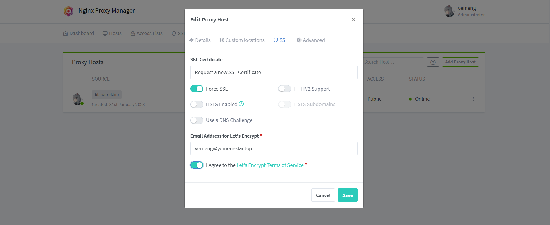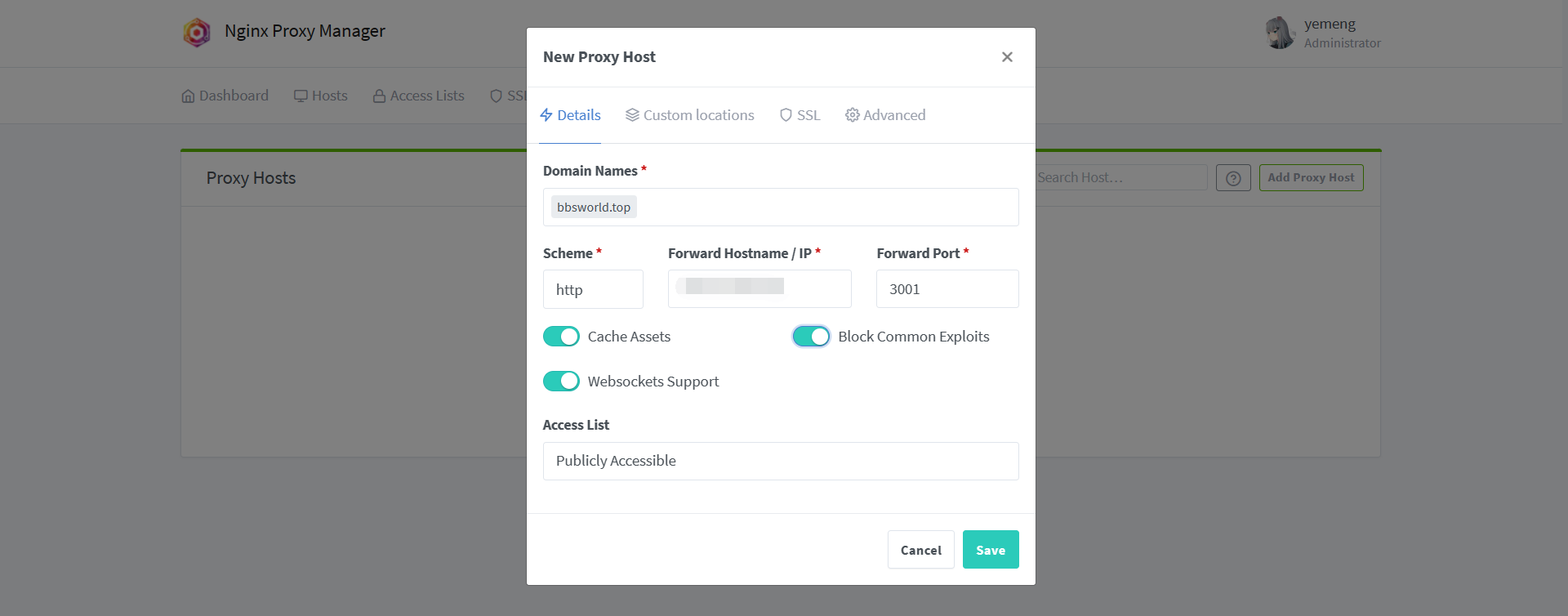 安装要求填写域名等信息,一般而言,推荐开启Websockets Support选项: