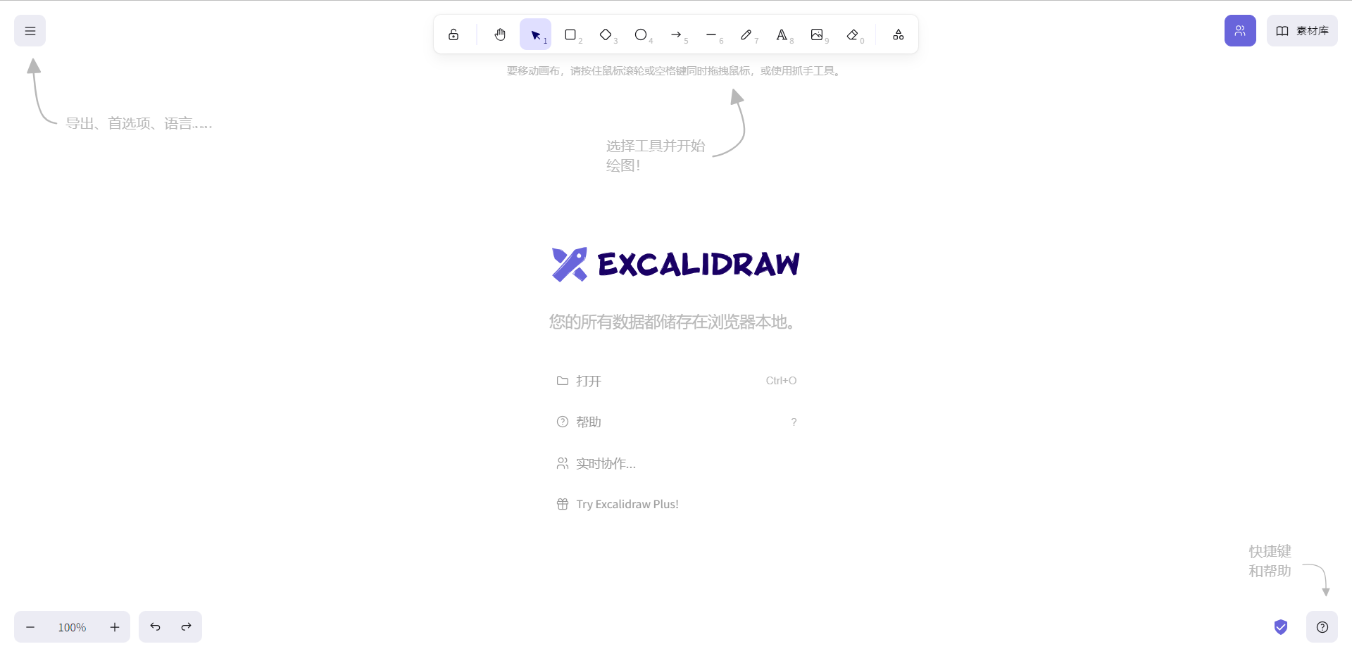 没有合适的软件让你画画?Excalidraw或许是极佳的选择!它支持网页绘画,绘图内容仅保存在浏览器中。