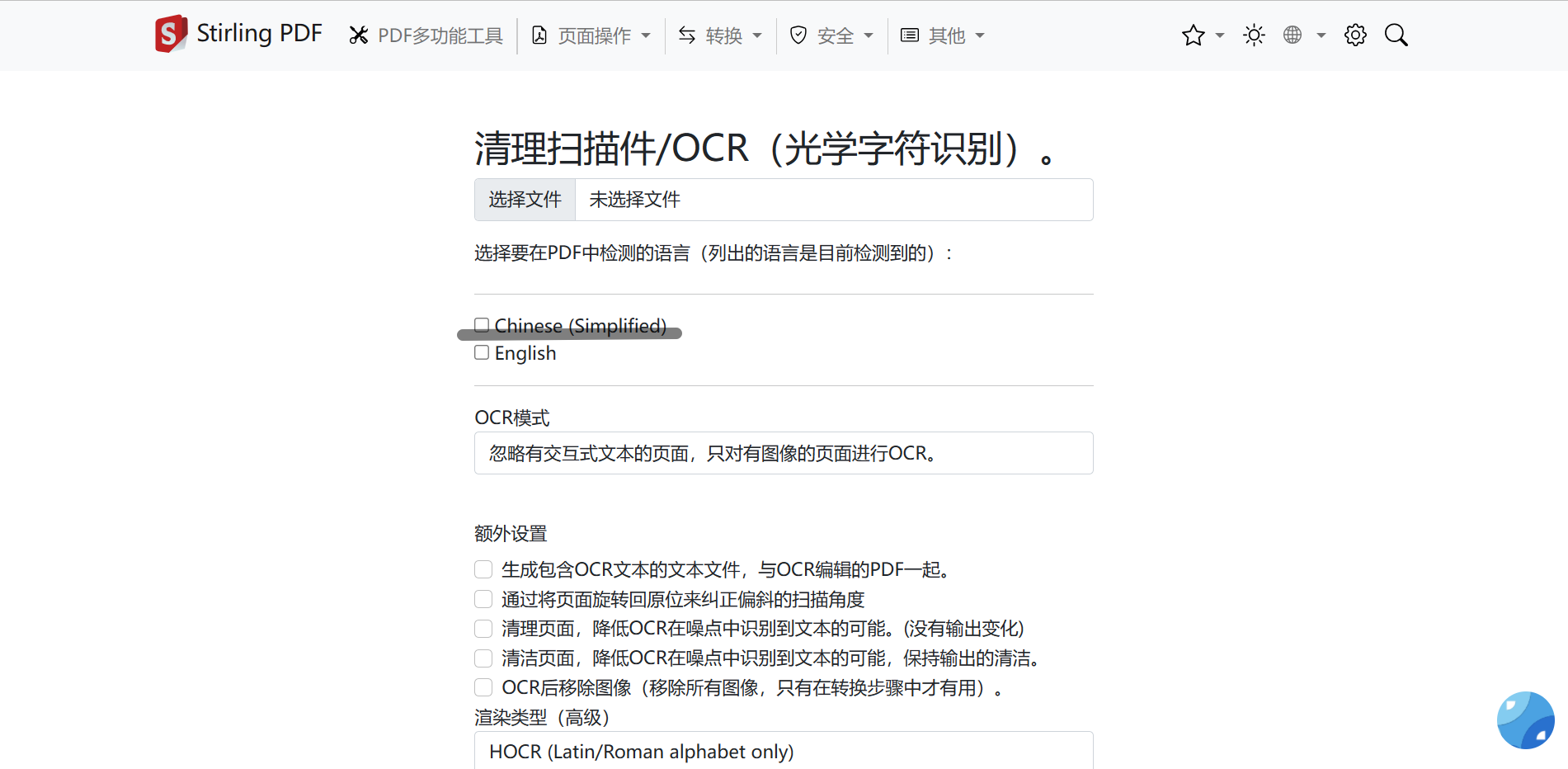 - OCRmyPDF:Stirling-PDF使用OCRmyPDF进行文字识别,而OCRmyPDF又使用tesseract进行文本识别。