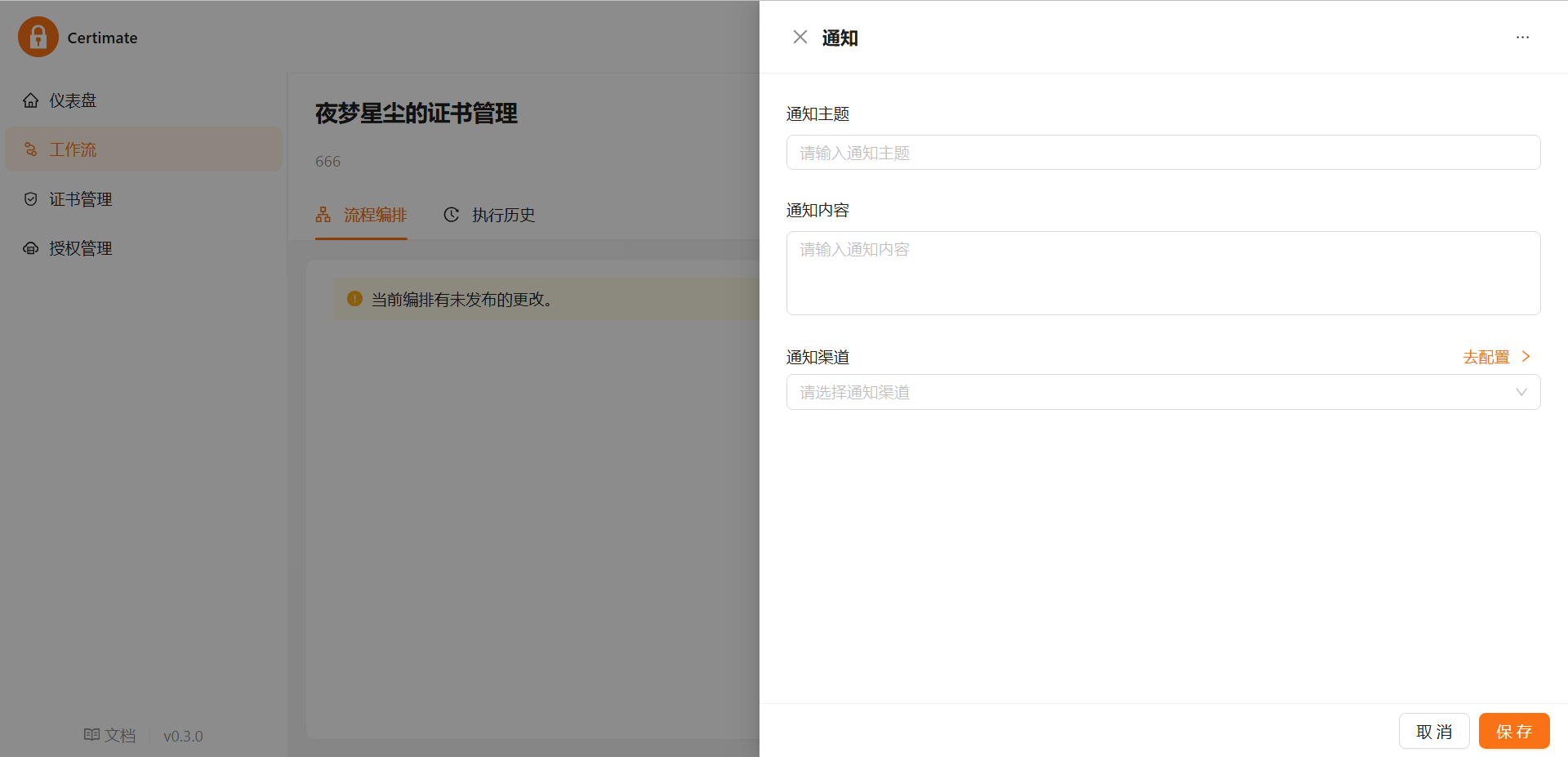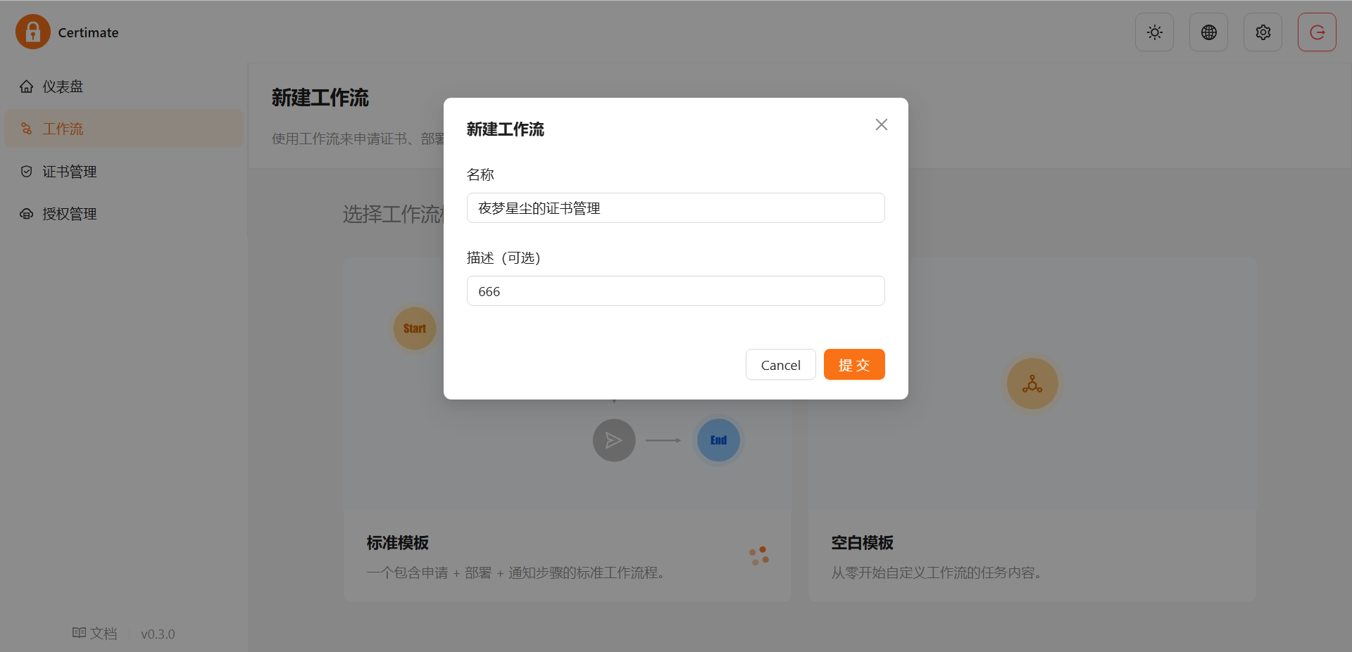 管理证书(新建工作流):