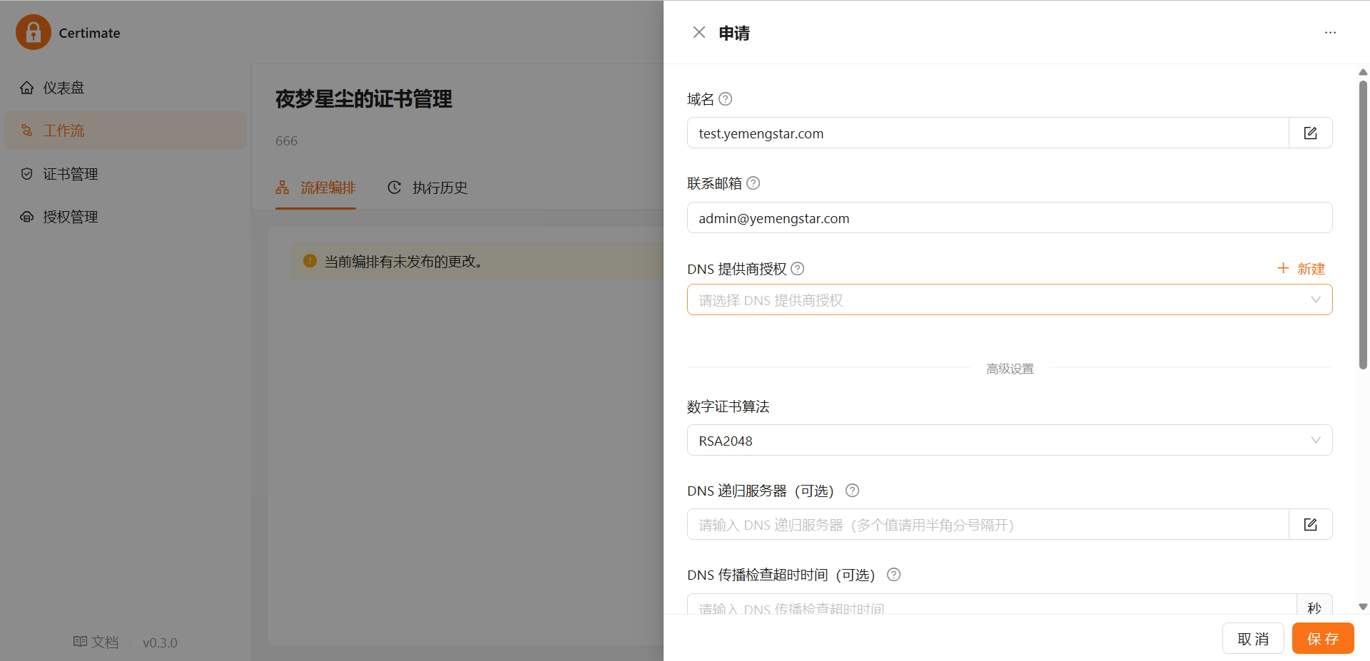 • 账号:admin@certimate.fun