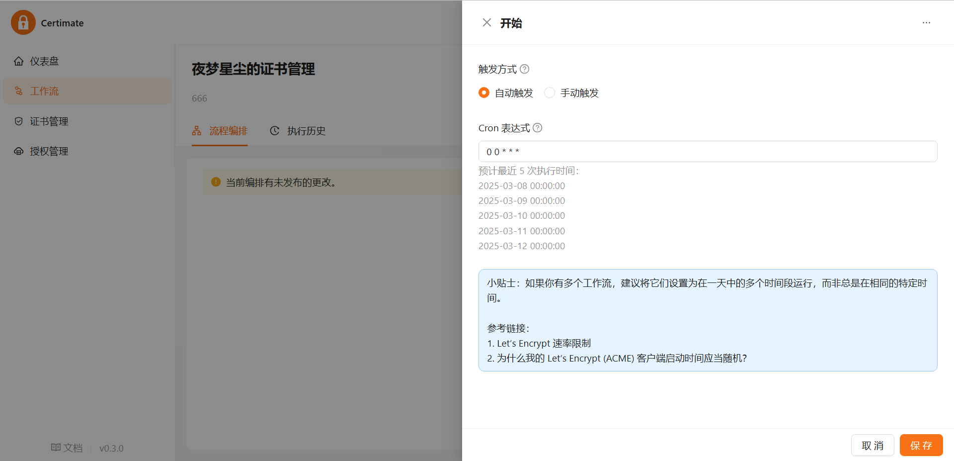 触发方式可以选择自动,自动检测证书状态: