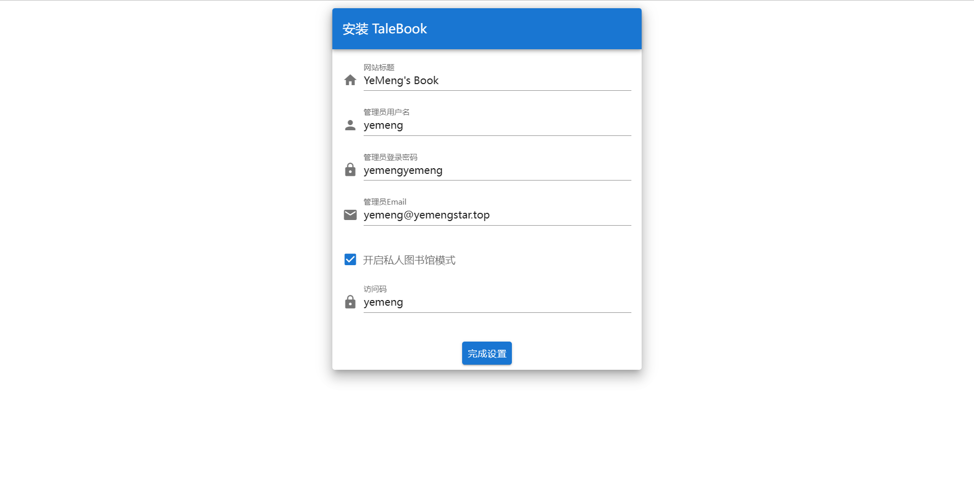访问以后,你需要完成站点基础信息的配置。