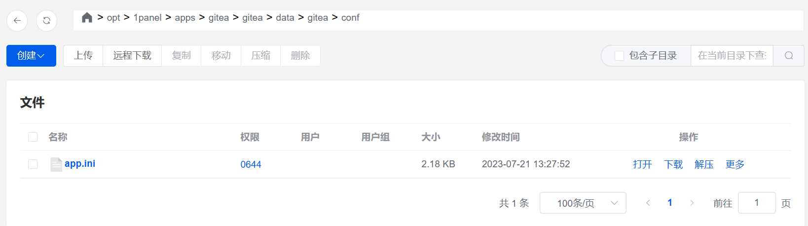进入/data/gitea/conf文件夹中,修改app.ini文件