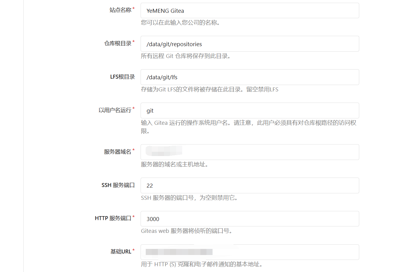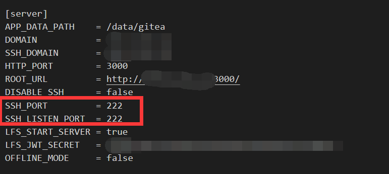 让我们观察一下连接方式ssh git@233.233.233.233:yemeng/hexo.git,我们在服务器公网ip后面直接接了用户名yemeng,没有接任何端口,也就是想当于走了默认端口22,这一步等价于ip:22,这也就是要登陆服务器的操作,这当然是需要密码的!我们应该是登陆服务器内部gitea容器的操作,因此我们需要修改gitea的一些配置!