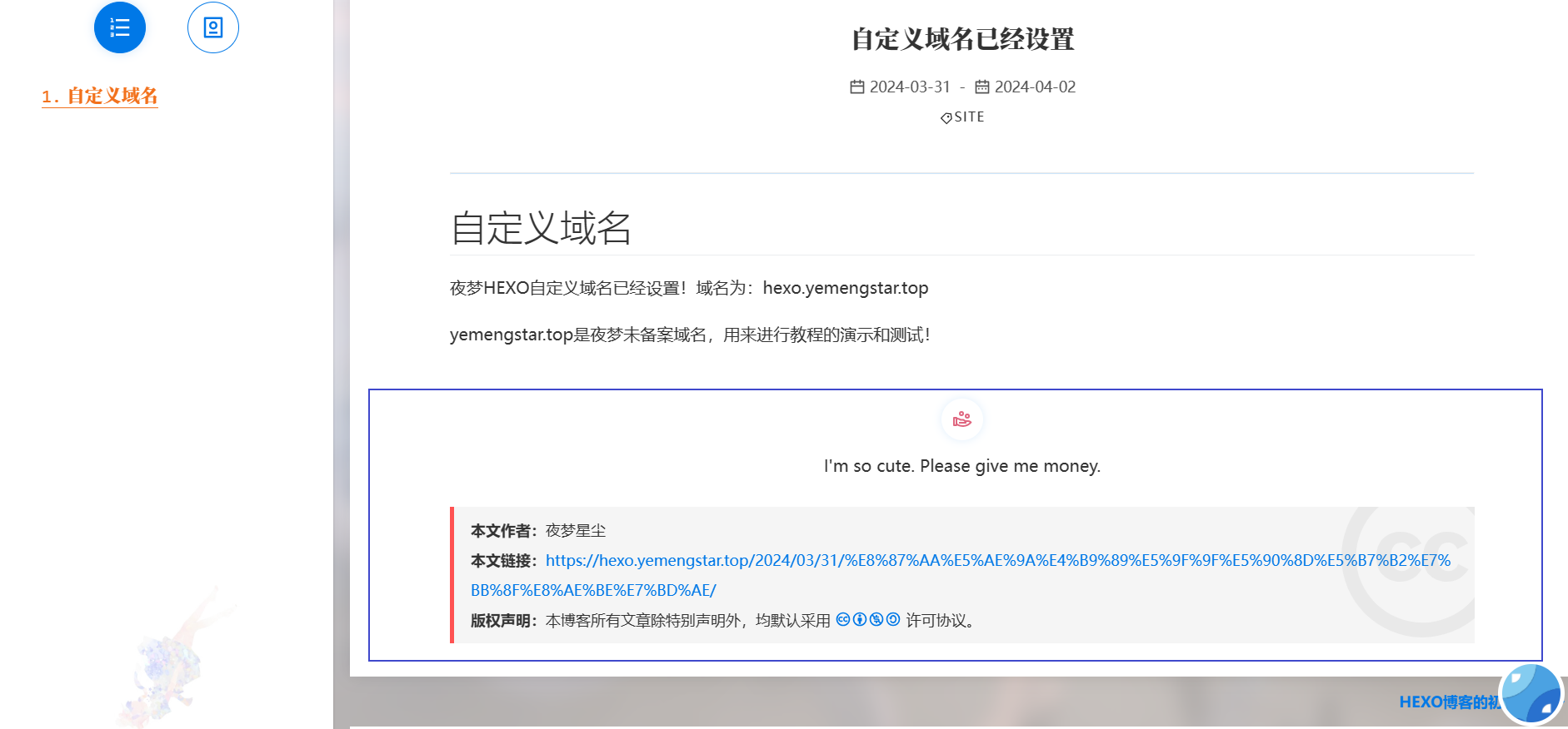 HEXO系列教程 | 配置云游君Yun主题PART3 | 打赏、文章永久链接、站点页脚配置