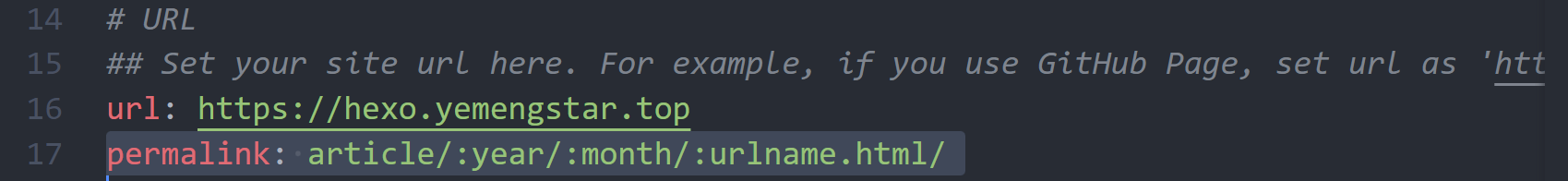 然后修改_config.yml中的URL链接(虽然前面已经设置过了,但是前面使用的是title,这里我们使用自定义的urlname):
