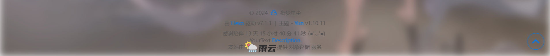 配置完以后,夜梦HEXO的页脚如下(感觉应该换一张背景图片的,这个字有点看不清楚):