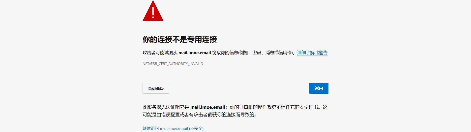mail.imoe.email 是你服务器的主机名,需确保该主机名解析到你的服务器 IP 地址。