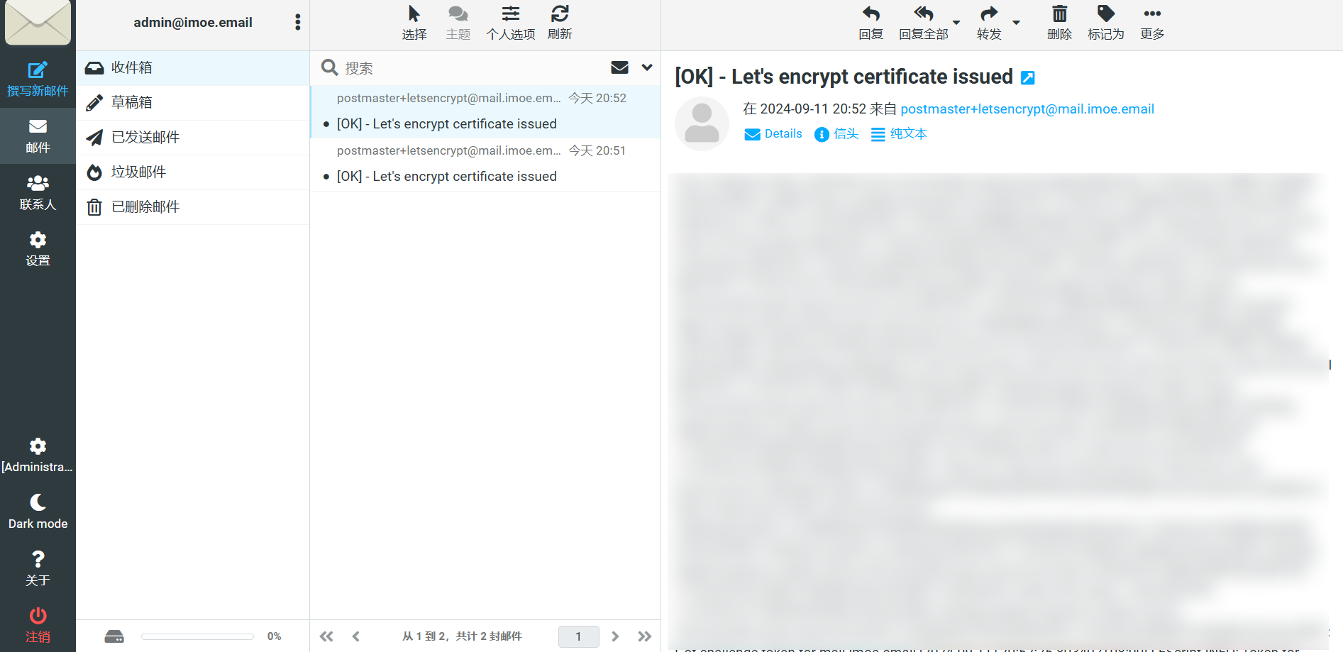 然后就可以访问mail.imoe.email(mail.yourdomain.com)进入WEB界面了。