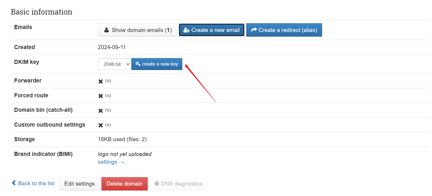 点击创建DKIM密钥: