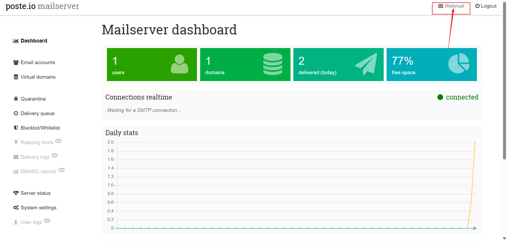 点击右上角的webmail,登录用户名和登录密码和管理后台一致。