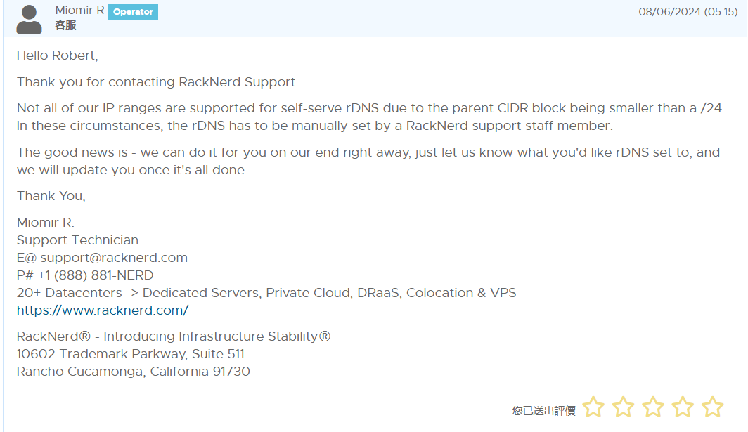 RackNerd的服务器价格便宜,开放所有端口(包括25端口)且支持设置rDNS,所以非常适合用来搭建邮局。这篇文章夜梦将介绍如何在RackNerd服务器上配置rDNS(PTR反向解析,简单的说就是将IP解析到域名上,确保IP与域名对应),具体部署邮局的方法夜梦会在后面的文章中介绍,小伙伴们可以期待一下哦~