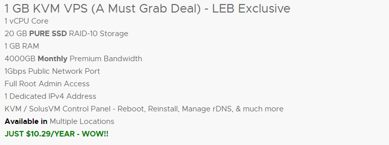 夜梦使用的RN服务器配置:1C / 1G / 20G SSD / 4T $10.29/年。直达链接:https://my.racknerd.com/