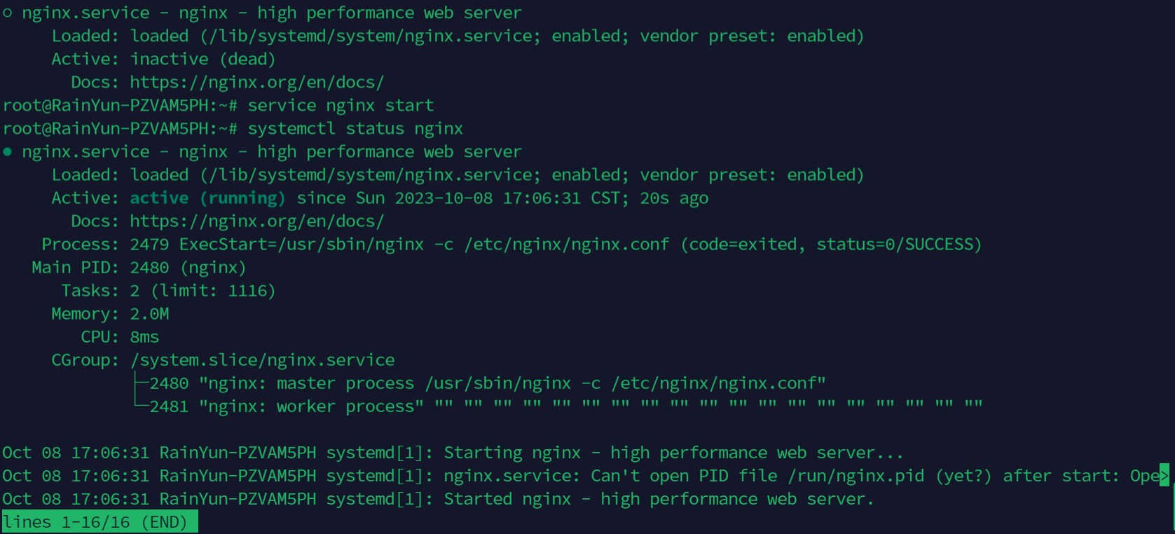 systemctl status nginx