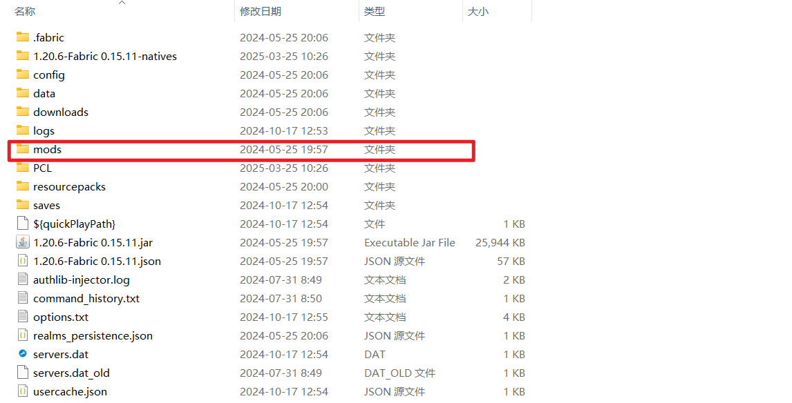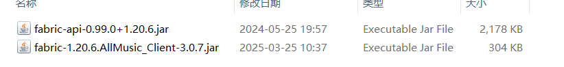 然后将下载好的mod放到里面(夜梦使用的是1.20.6 fabric端,所以下载的就是fabric-1.20.6.AllMusic_Client-3.0.7.jar):