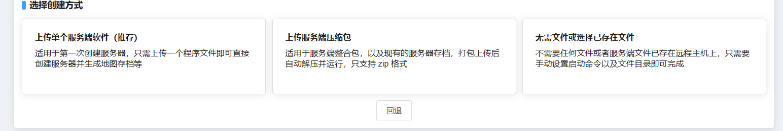 如果采用官方的SEVER端,选择上传单个服务端软件;如果是自己的压缩包选择第二个上传服务端压缩包。